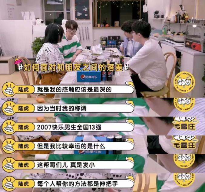 陆虎与这群好兄弟同期出道,奈何际遇不同。在陆虎最困难的时候,0713兄弟团想办法帮助陆虎:魏晨帮他包商演,张杰买了他卖不完的专辑,王栎鑫经常带他回家吃饭,陈楚生、苏醒、张远陪他聊天疏散坏情绪,大家时不时给他介绍工作机会,甚至还帮他凑出了房子的首付。