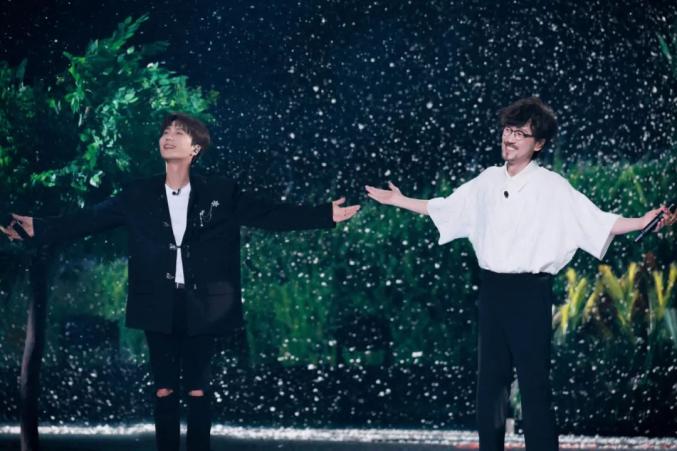 今年陆虎也终于迎来了自己的首个常驻音综《我们的歌第四季》。在第五期的舞台上,陆虎与周传雄组成的“快乐传虎机“组合带来了特别版《雪落下的声音》。