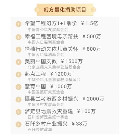 回馈社会:幻方量化累计捐赠已超过5.8亿元!