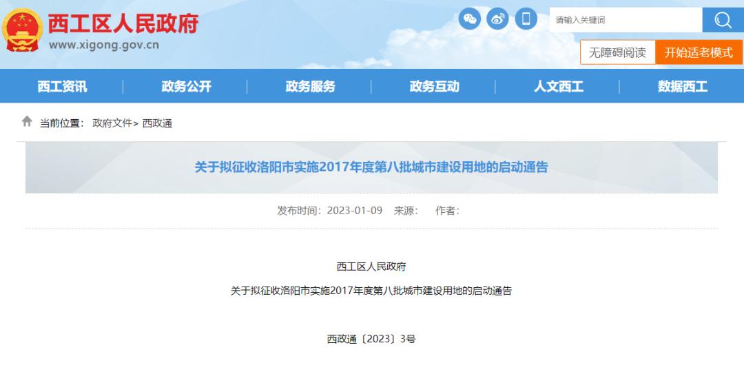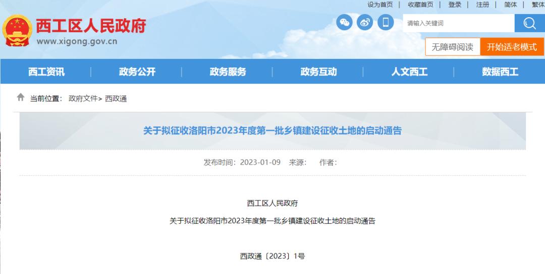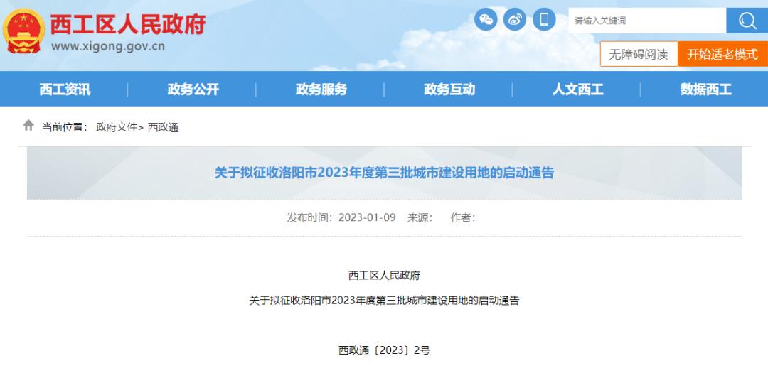 关于拟征收洛阳市2023年度第三批城市建设用地的启动通告