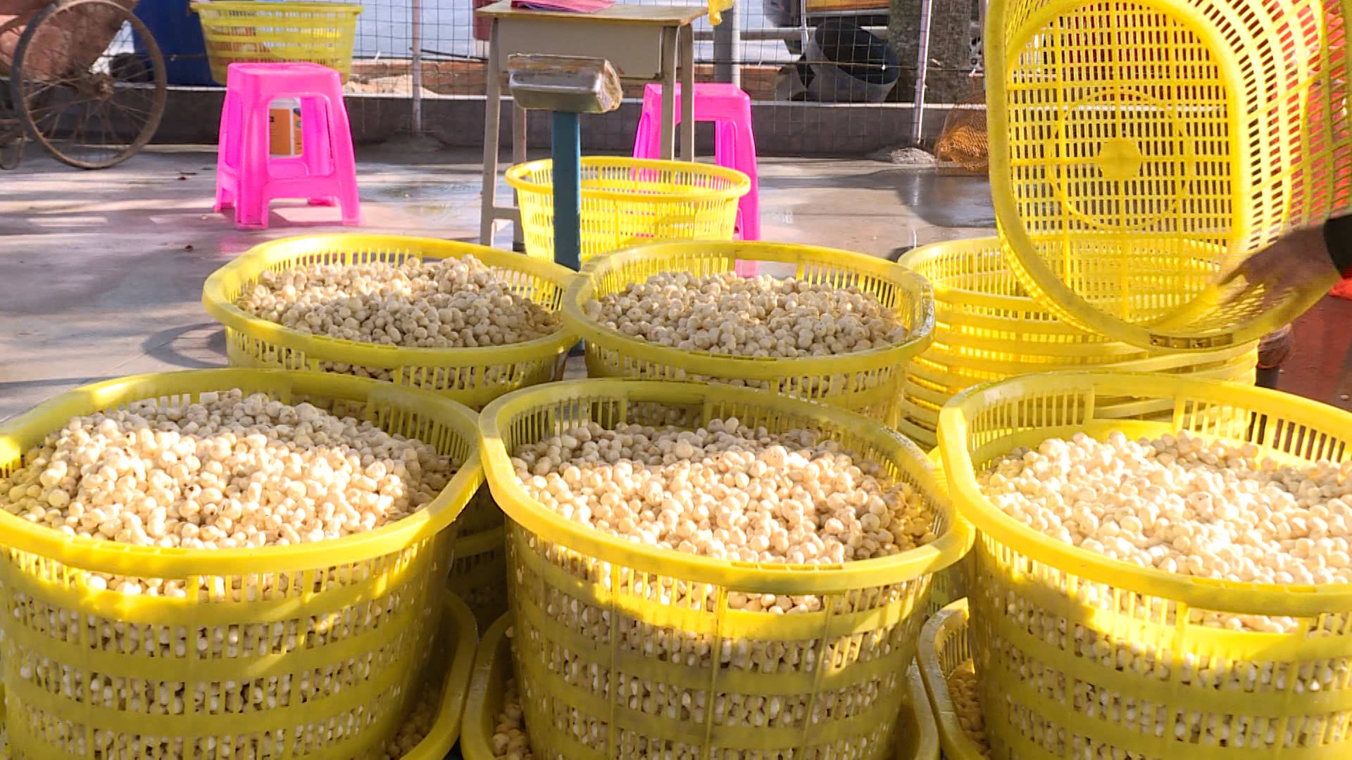珍珠马蹄基地负责人 曾昭勇:关于这个销量的问题,我们公司每个月最少都有7-8万斤,最多的时候有10万斤。我们现在平均每天都有5000-6000斤的销量。至于这个价格问题,在中秋节和国庆节期间价格保持在15-16元。但是现在由于种植面积多,加上今年产量高一点,这个价格就降下来了,现在是9-10元。