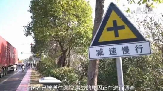 事发现场,是一个交叉路口。路边上写着“减速慢行”的标识,但大晚上的,司机可能也没有太注意。