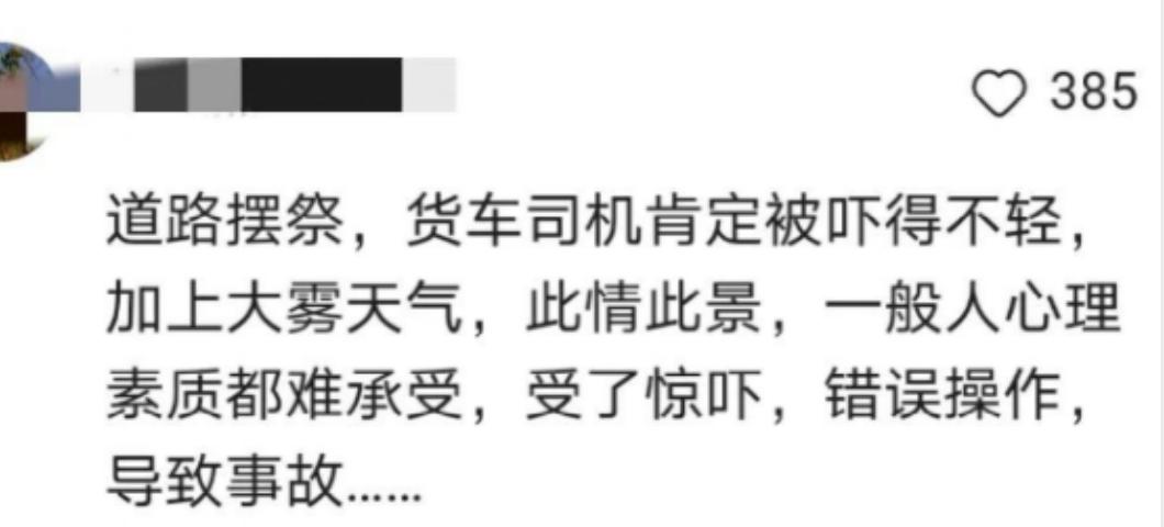 不过还得说一句,半夜在大车出没的路边摆路祭,马路上聚集这么多人,也确实有很大风险。