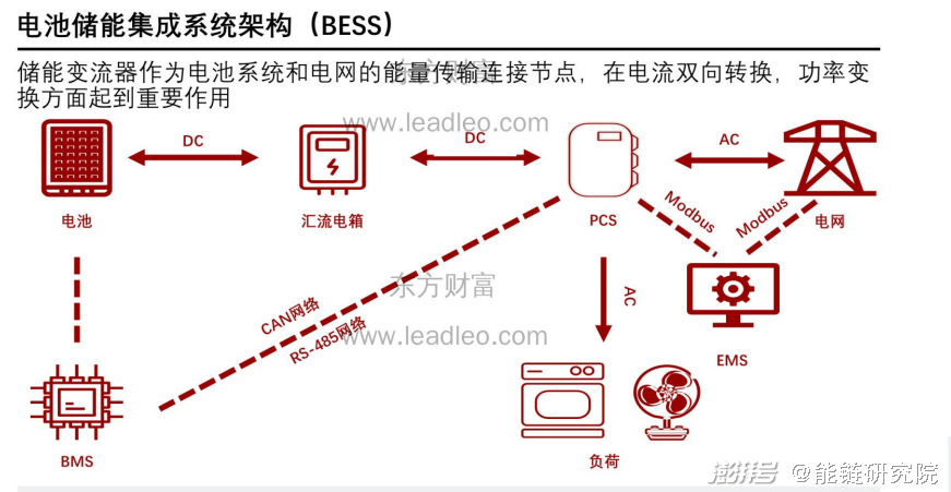 从产业链来看,电化学储能系统主要由电池组、电池管理系统(BMS)、能量管理系统(EMS)、储能变流器(PCS)以及其他电气设备构成。