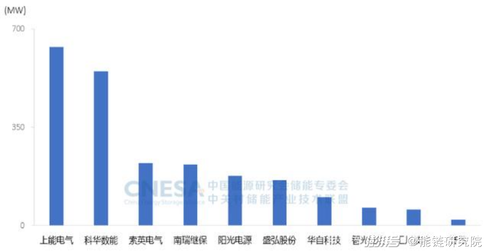 2021年,中国新增投运的新型储能项目中,装机规模排名前十位的储能PCS提供商,依次为:上能电气、科华数能、索英电气、南瑞继保、阳光电源、盛弘股份、华自科技(300490.SZ)、智光储能、汇川技术和许继电气(000400.SZ)。