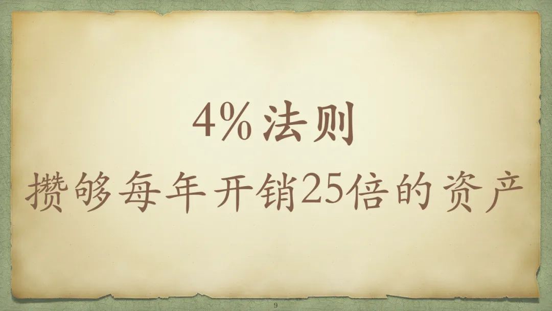 当然,做天才很难。我们还是做个幸福的普通人吧。这方面的财富标准,我推荐麻省理工的威廉•班根提出的4%法则: