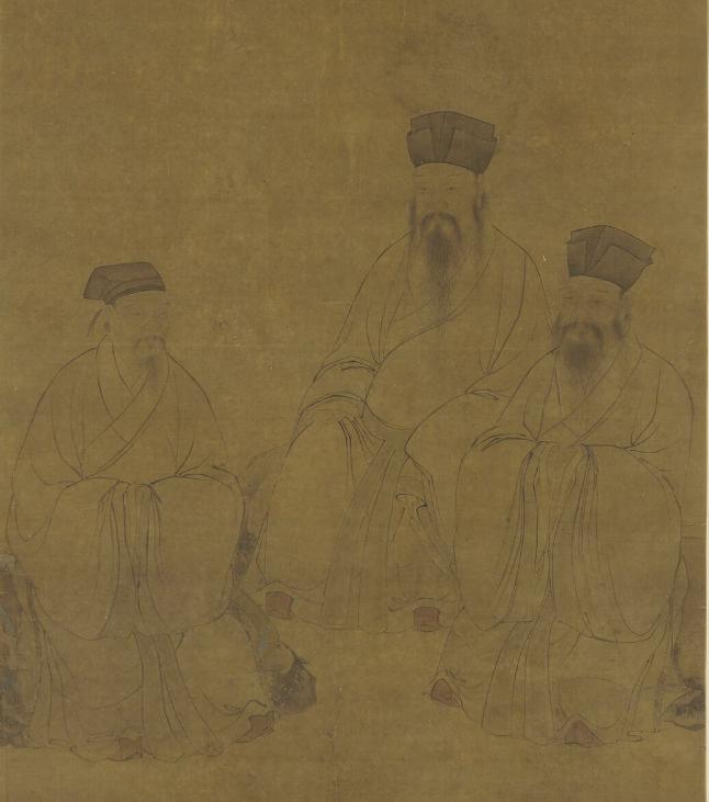 元刘敏政绘《三夫子像》(局部),画中从左往右依次为朱熹、程颢、程颐。在德清的日子,吕祖谦并不是两耳不闻窗外事。他给弟子潘景宪写信,要他安排好婺州学校的事务,并提出要求,要以“和肃”为上,学生学习既要相互协和,也要严格,使其专心致志。他专程派人给好友朱熹送去书信,代人向朱熹借《伊川易传》,因为他知道朱熹书库的版本是最好的。《伊川易传》是北宋程颐注解《周易》的哲学著作。朱熹收到来信后,随即回复,并把《伊川易传》六册托人带给吕祖谦。在六月六日,他还被正式任命为太学博士,只是暂时待缺,要等待合适的职位和地方。八月,他就得到了严州学教授的职位,主管严州的教育工作,当然主要是讲解经义、掌管课试。八月十一日,吕祖谦带着韩螺离开德清,先回婺州,让新妇入家庙认祖归宗,然后,就到严州上任去了。