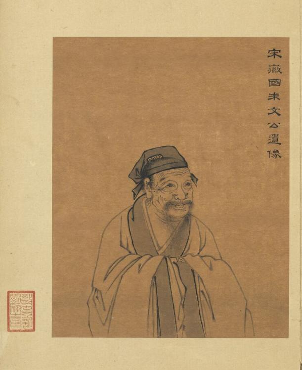 《朱熹像》 宋佚名作为思想家,吕祖谦是南宋理学的代表人物,扮演的是一个调和论者,一心要调和朱熹的“理学”和陆九渊的“心学”。朱熹是理学的集大成者,继承和发展了程颐的“理”的一元论学说,以“理”为最高精神实体,视作宇宙万物的本体。而无师自通的陆九渊所选择的学术道路是程颢的心学,接受程颢“心是理,理是心”“以心知天”等观点,规定“心”为本体的终极所在,是哲学的最高范畴,他最著名的一句话便是“宇宙便是吾心,吾心即是宇宙”。“理学”和“心学”的门户派别,几成冰炭。由此,吕祖谦发起组织了中国学术史上有名的“鹅湖之会”,他是这场学术辩论的主持人,又是评议者。辩论持续了几十天,吕祖谦认为朱熹“英迈刚明,而工夫就实入细,殊未可量”,而陆九渊“坚实有力,但欠开阔”,以致陆埋怨吕祖谦“为元晦(朱熹的字)所屈”。这场辩论虽然没有让两位哲学家思想上取得认同,但争论本身就是一种求同存异,使双方对各自的观点有了相互的了解。