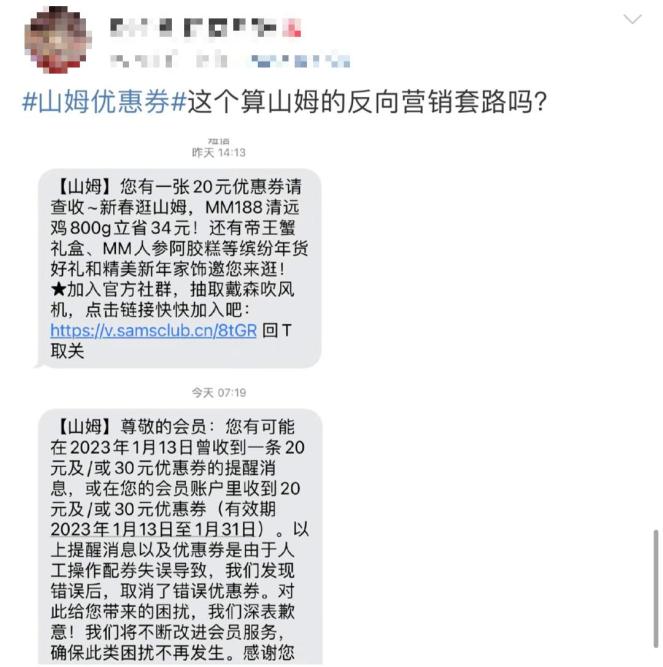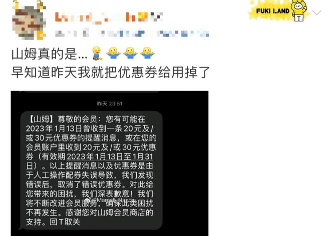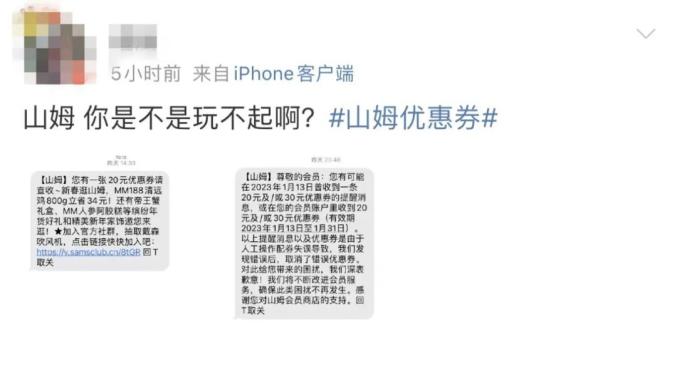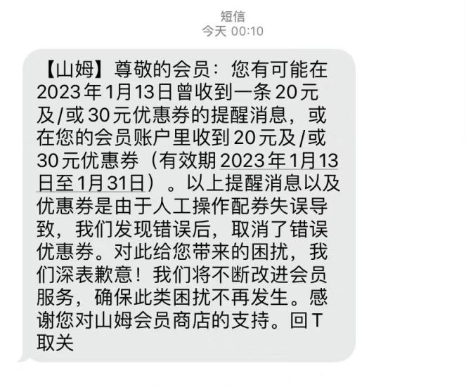 同时,也有不少网友表示深夜收到了山姆的解释短信