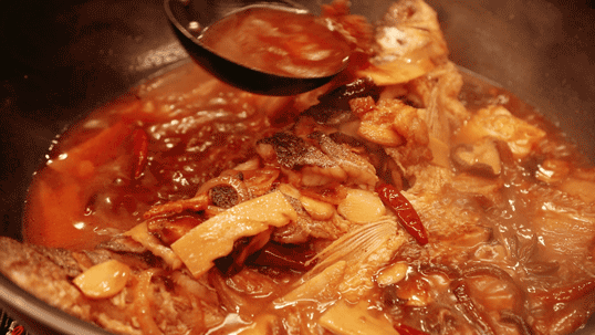 湖水煮湖鱼三山湖草鱼加入腌豇豆、苕藤叶等本地腌菜,用湖水柴火灶大火煮制,味道鲜美。看似简单的食材,味道却极好,若是能在年夜饭桌上露上一手,绝对能惊艳全场。