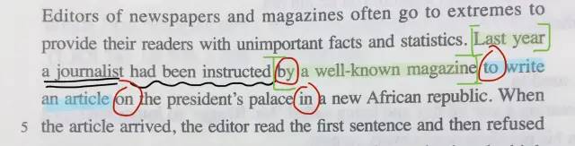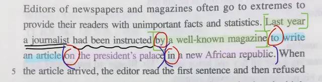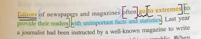 我:那就可以先把句子的基本结构找出来,比如第一句是这样的,很长是不是?但,我看到的其实只有黄色的部分,因为这就是一个非常基础的主谓结构,所以很容易找到主语editors和谓语go。