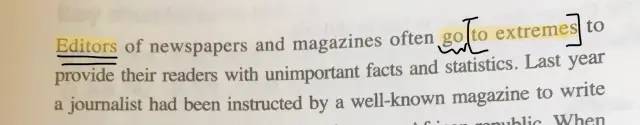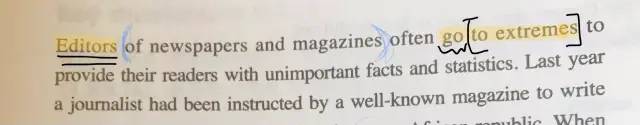 我:那又为什么把不是主谓成分的to extremes一起划出来?小朋友:因为它可以帮我记住整个句子的意思,就是“编辑走极端”。