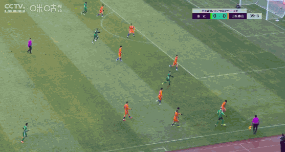 比赛开场半个多小时,双方你来我往,互有攻势。第36分钟,浙江队顾斌禁区内接队友弗兰克助攻,山东泰山队门将王大雷扑救失误,皮球入网,浙江队取得1:0领先。