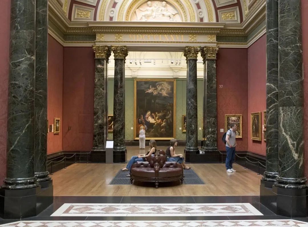英国国家美术馆展厅外观 ©The National Gallery, London.值得一提的是,英国国家美术馆的建立不同于欧洲大多数国家,并非建立在过往皇家收藏的基础上。它肇始于政府自一位私人收藏者购入的38幅重要画作,继而持续不断的发展则反映历任馆长和理事会的雄心抱负,以及众多慷慨私人捐赠者品味的作品。这与上海博物馆的馆藏历史,从某种程度上,有一定的相似性。一部美术馆的收藏史,承载着文化的自觉与愿景,也体现着审美价值的时代变迁。观众亦可在本次展览中,一窥200年来英国艺术收藏的故事。