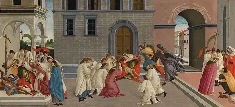 对于叙事画家而言,在一幅固定、静止的图像中重述故事,让它在时间中展开,是永恒的挑战。且看波提切利如何巧妙通过地理空间的一致性,使三个圣迹片段在画中统一。