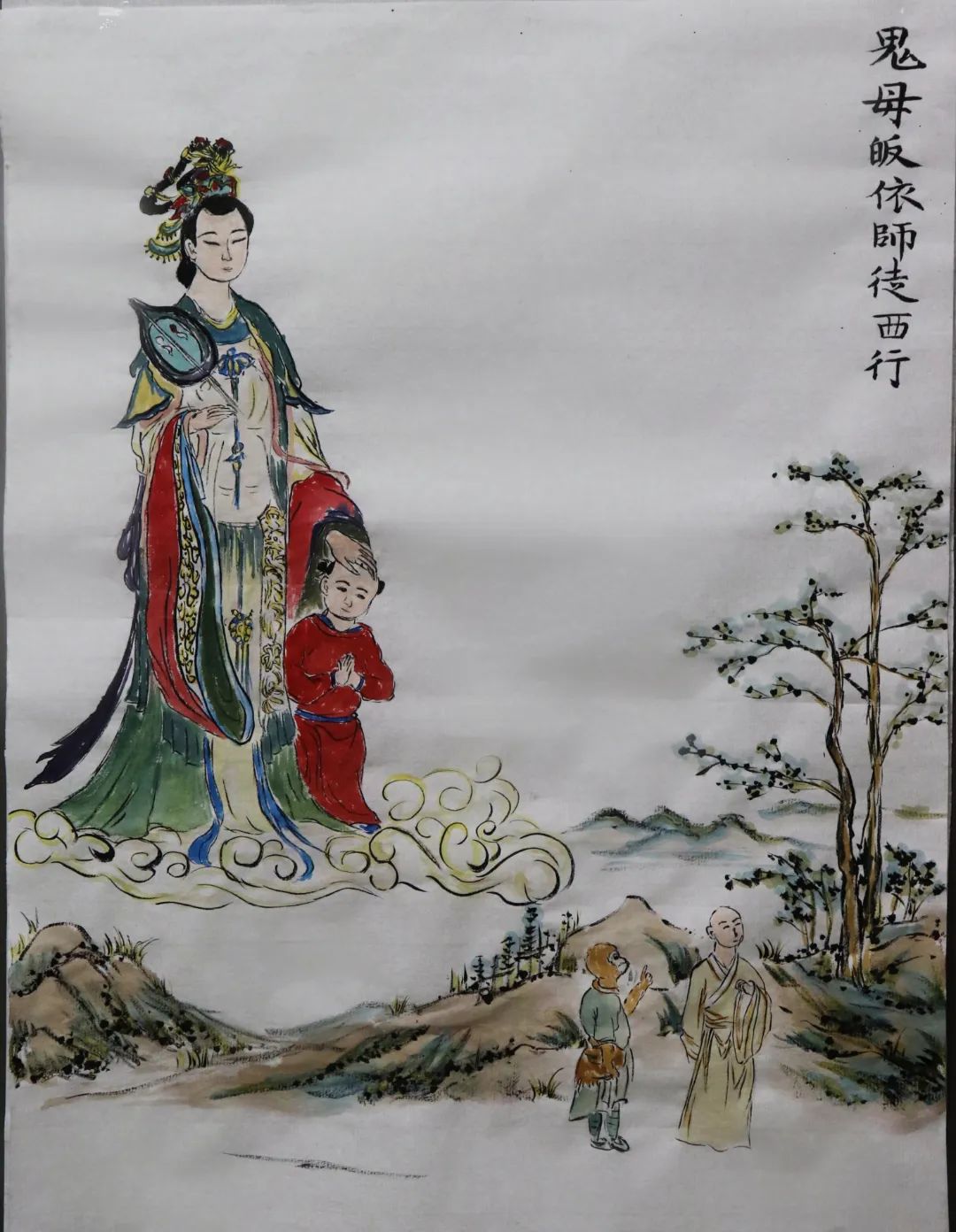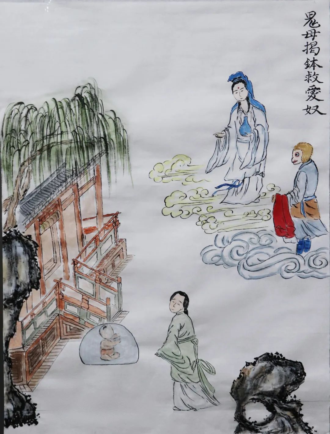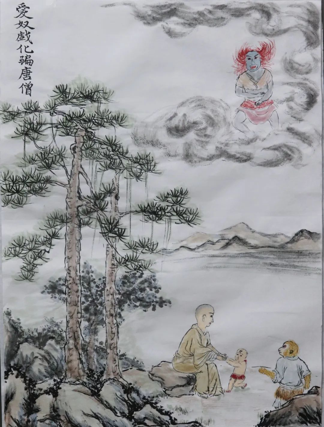 《过鬼母国》套画,吸收了课堂上讲授的《大唐三藏取经诗话》的情节,将《唐僧取经图册》《西游记杂剧》插图的人物、建筑造型与设定融合在内,又给《西游记》画出了新的形象。《殷氏形象及文创设计》