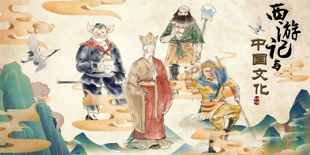 西游人物殷温娇(《西游记》杂剧、小说文本中唐僧的母亲)作为绘画主题,并根据故事发展的不同阶段创作了反映人物心态、身份变化的几种“皮肤”,并设想了可以延伸出的文创产品。《西游记与中国文化》课程海报