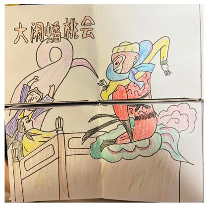 四张海报分别使用了不同风格的人物形象和元素,均以师徒四人作为画面的中心,大量使用山和云的元素,代表师徒四人西天取经路上的坎坷和冒险。除了天马行空的想象力,在同学们细致的观察力和超强的动手能力下,诞生了翻糖版的太上老君存储仙丹的紫金葫芦,以西游记连环画为素材的“翻转盒子”,机甲风格孙悟空的高达玩具。