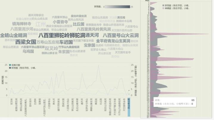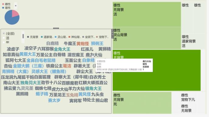 当人工智能和算法普及之后,同学们开始用一种新的玩法研究《西游记》。使用d3.js和Vue算法将师徒四人取经路线实现可视化,用MBTI和荣格八维视角分析后的师徒四人形象分析后,理解他们在团队中的角色意义,对妖怪的伤亡情况,以及妖怪的性别、地理的因素进行统计分析。