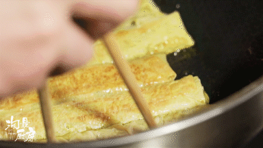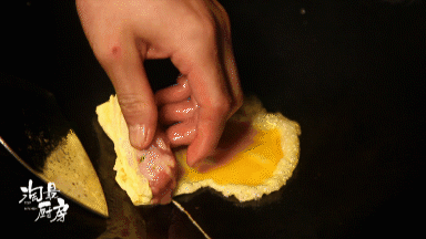 4. 肉馅放在蛋皮一端,卷成砖状。