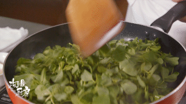 4. 锅中倒油,把草头快速翻炒至干瘪。