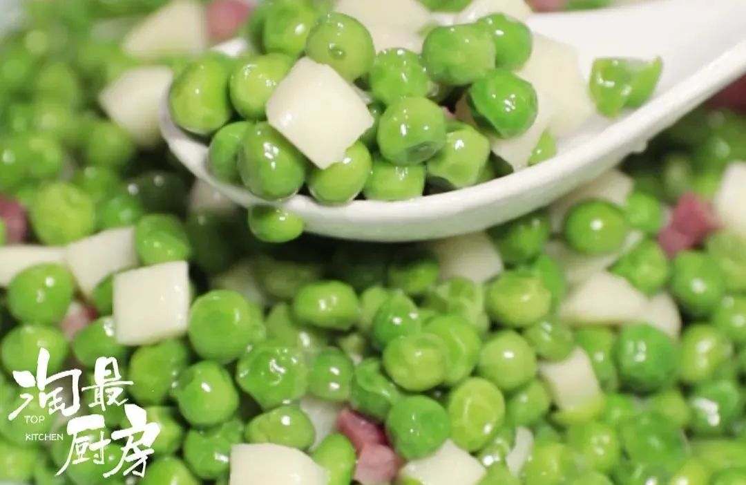 2. 锅中水开,倒入山药、豌豆与金腿焯水。