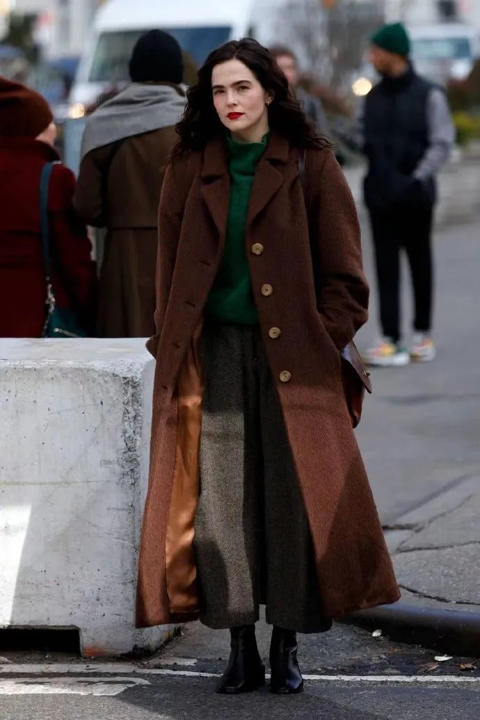 仔细品品,裤子与靴子的同色系搭配,还能意外带来一丝高级感,在这个冬天也不怕显胖显臃肿了。