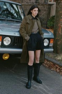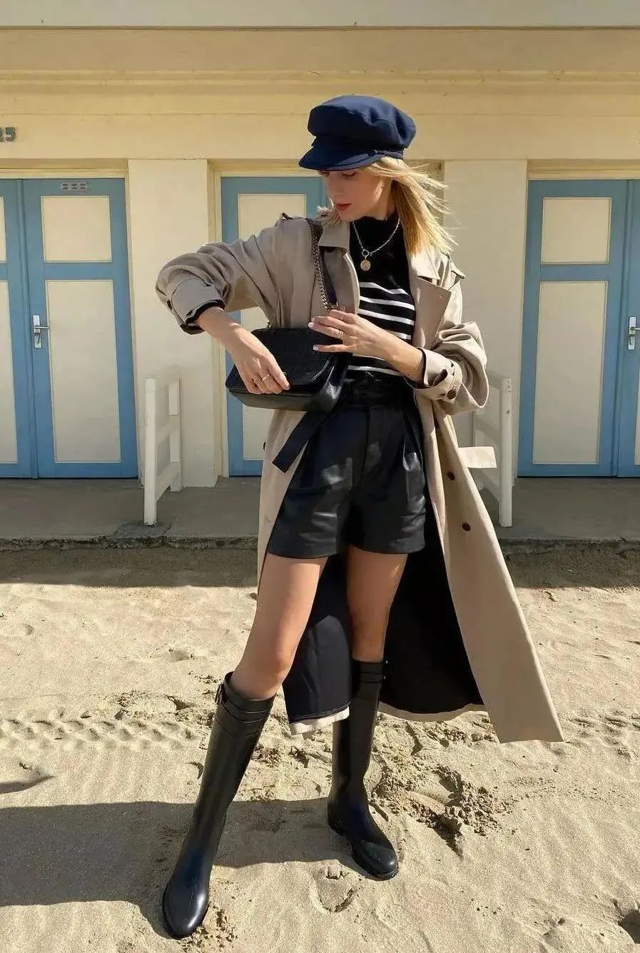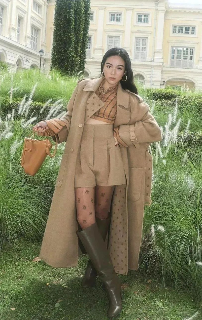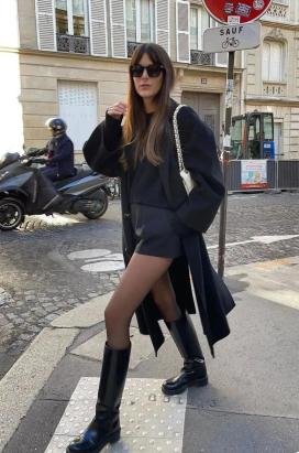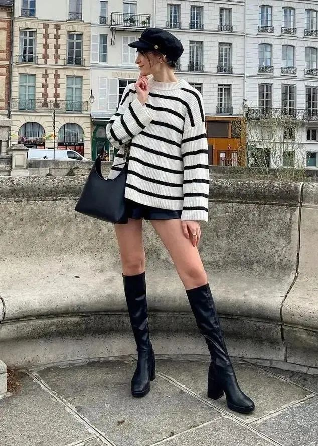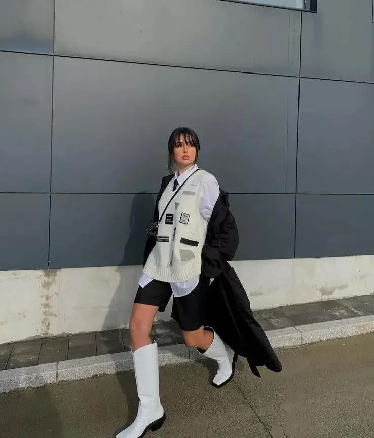 天气没那么冷的地区,长西装or打毛衣+短裤,再搭配长靴,上长下短的时髦穿法让你轻松拥有大长腿。