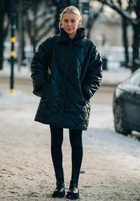 当然!说到紧身裤,更日常的还得是小黑裤与厚底靴搭配,尤其是在同为黑色的情况下,视觉上有延伸腿长的效果,显高显瘦能力一绝。