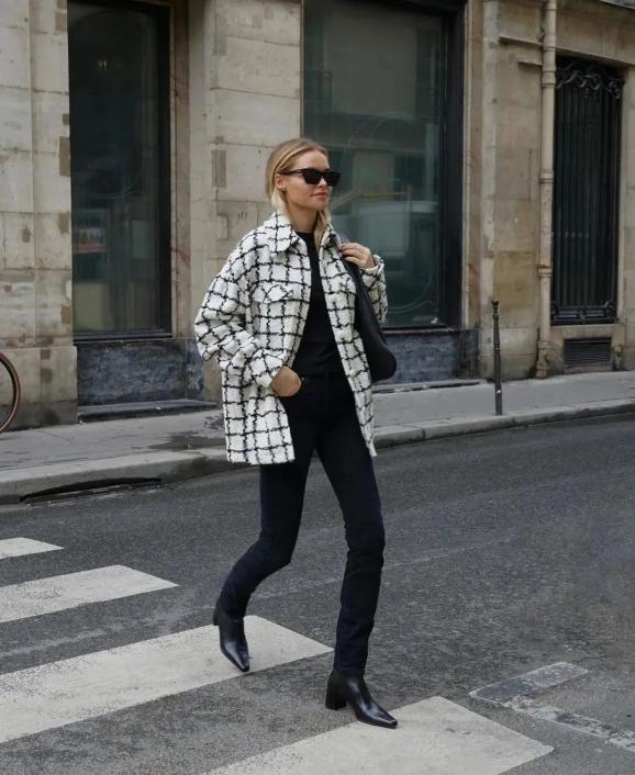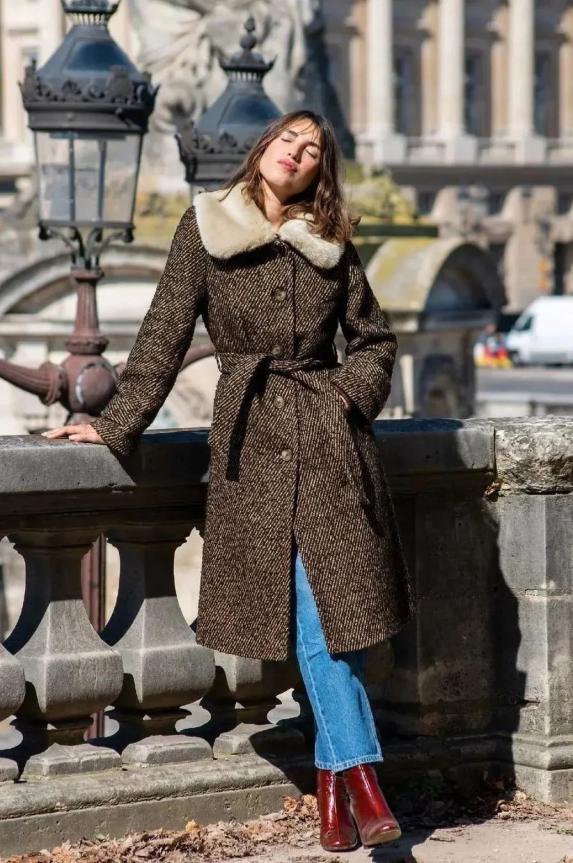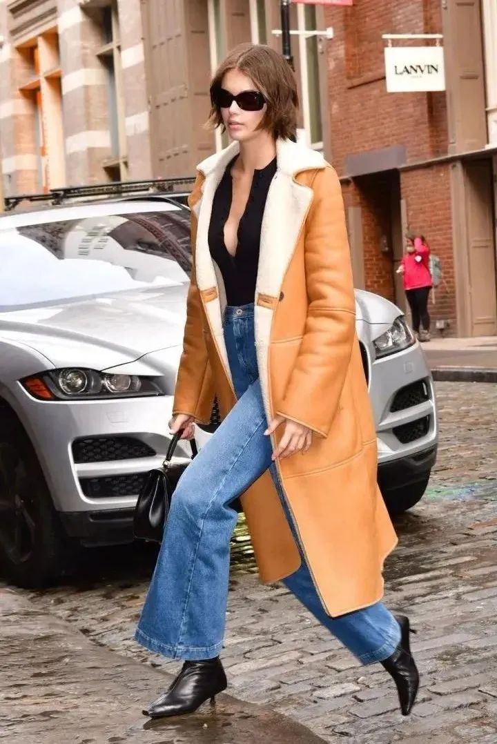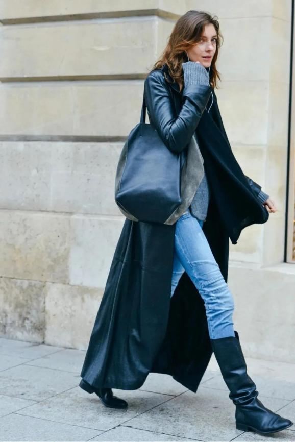 有了阔腿牛仔裤和尖头踝靴的加入,还可以大大削弱了大外套带来的厚重感,独特性和吸睛度不言而喻,穿上就是妥妥的摩登女郎~