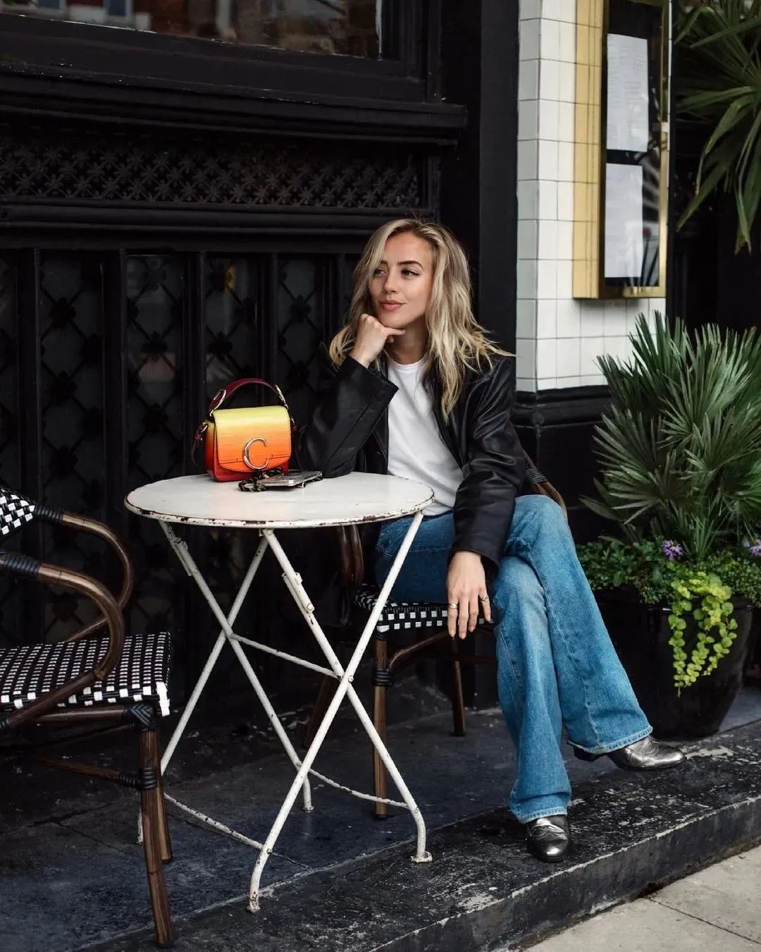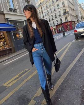 如果是比较高瘦的姐妹,紧身的牛仔裤+袜靴,再搭配一件黑夹克,走路自带气场,绝了。