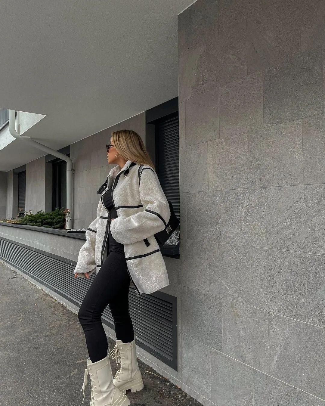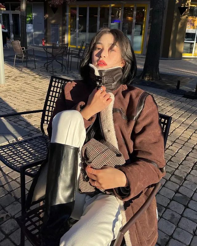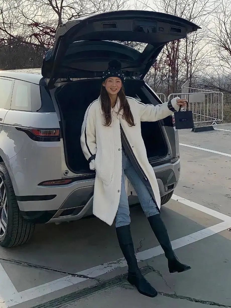 天气冷了换成羊羔毛外套,会更加有气场也更保暖。