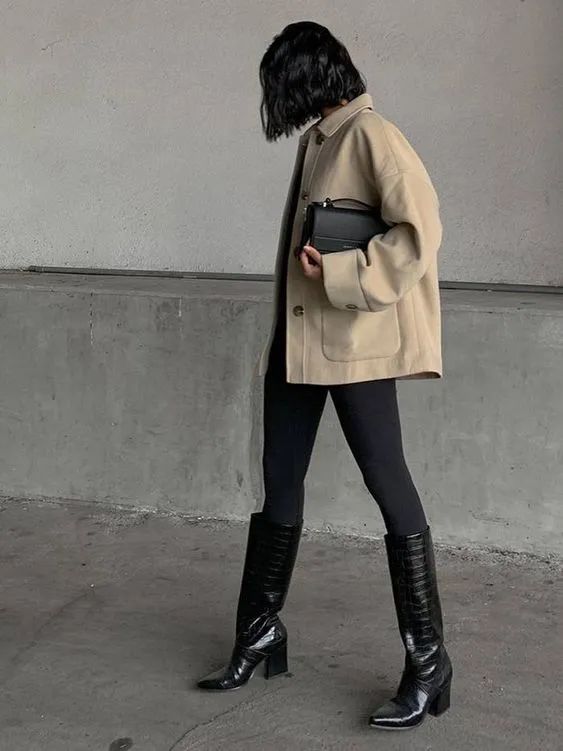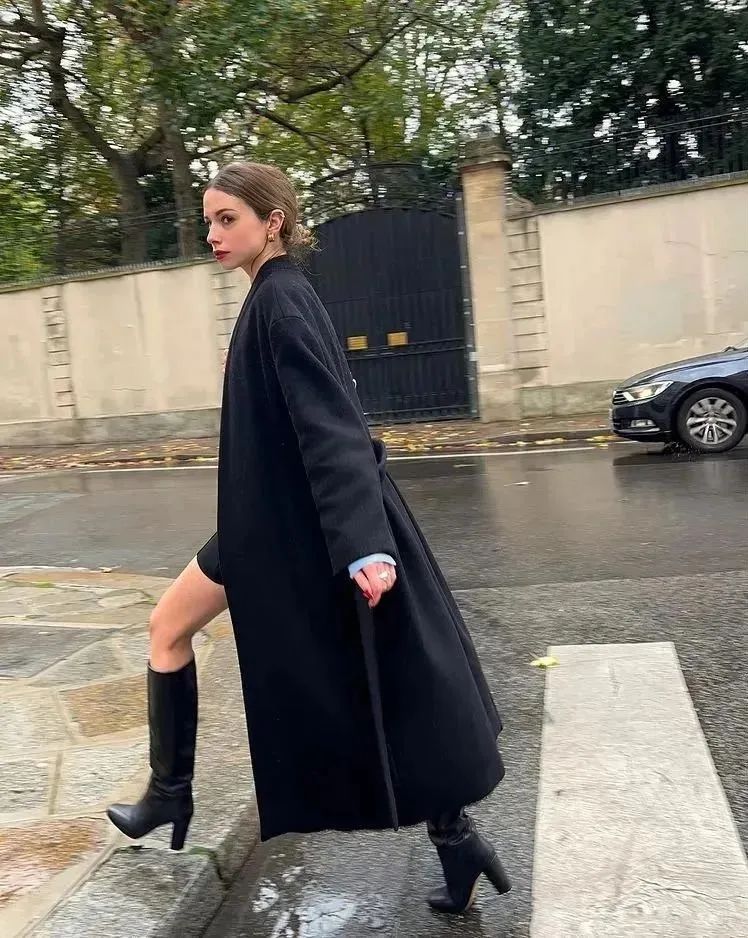 今年的异形高跟靴很是受欢迎,搭配阔腿裤+长外套,与寒冷冬日巧妙结合,尽显不俗之风~