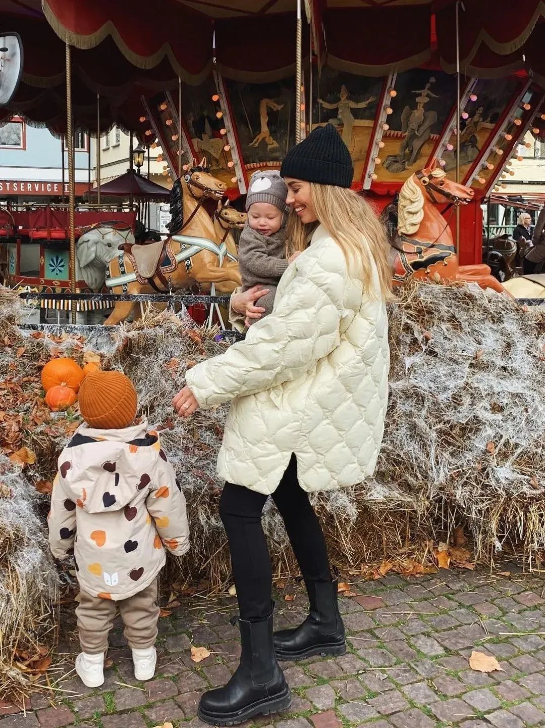 当然,对于大部分地区的宝宝来说,在冬天可以尝试将裤脚塞进靴子里,不露腿也可以时髦出街!
