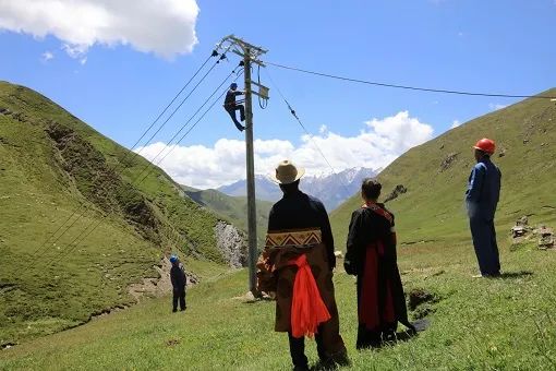 ▲国网青海电力员工在野牛沟乡边麻村实施农网升级改造