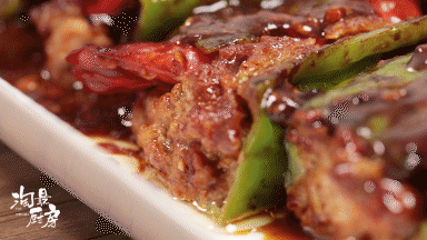 “酿”是客家话里的一个动词,意为“植入馅料”。看这肉馅满满当当的酿在青椒里,表面淋着油亮浓稠的酱汁,每一口都是满满的幸福感。