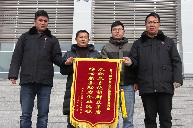 1月18日早上,四川省西昌汽车运输(集团)昭觉公司的工作人员给昭觉县人民法院民事审判庭送来了一面锦旗“尽职尽责化解群众矛盾,贴心服务助力企业远航”。