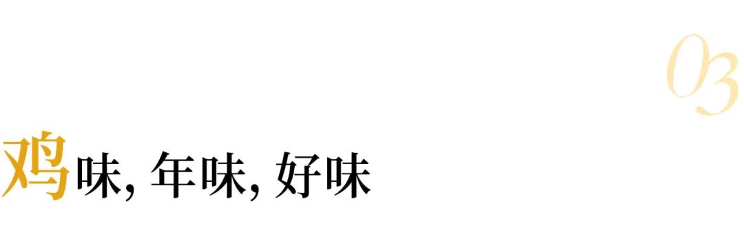 吃鸡时广东人也善玩谐音梗,每个部位都要讨一个好口彩,又带有“以形补形”的养生文化成分,像是鸡爪故为“抓钱手”,须留给家中最年富力强的一辈先吃,鸡冠则通“官”字,衍生“桂冠”之意,鸡翅则表示飞黄腾达、一飞冲天,而一只寄托了诸多美意的鸡最终为亲朋好友们分享,如此成全了席间所有人都大吉大利、诸事顺遂的新年愿景。