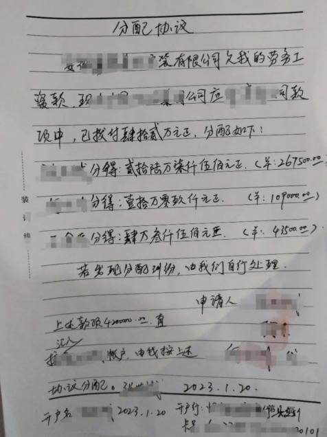年关临近,执行法官一直在督促中国某集团公司汇款,直到1月20日上午11时法院收到该笔款项,执行法官放弃午休第一时间召集双方当事人到庭确定分配方案,并向各个审批环节经办人电话沟通,保障退款发放畅通,下午2点多顺利将420000元劳务费成功发出,直到张某某等人钱到账,执行法官的心才落地,让农民工在春节前拿到劳务费回家过个祥和年,这便是执行干警们工作中最大的心愿。