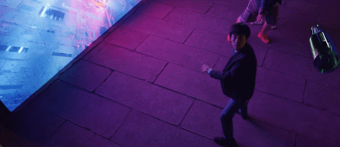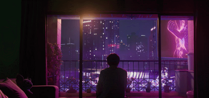 谜团尚未解开,他又看到了五花八门的超现实场景。夸张的霓虹灯,从大厦里伸出来的巨手。