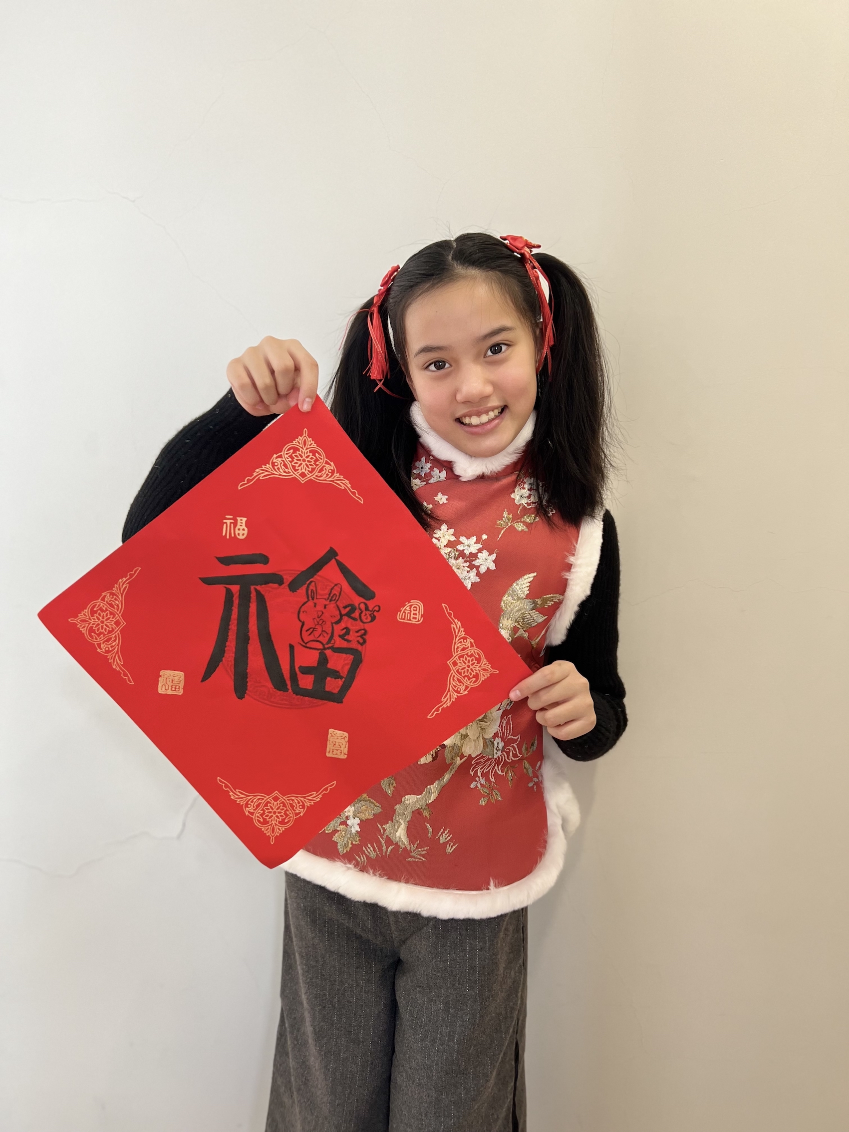 上海市宝山区大华小学五年级学生张欣荣为新年写福字。均为受访者供图