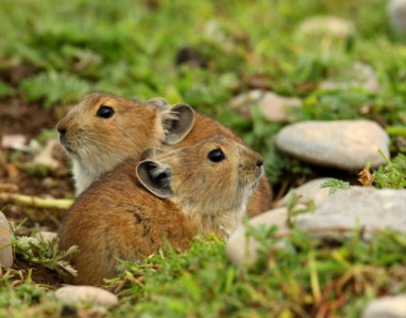 鼠兔主要分布于高原气候比较温暖湿润,阳光充足的宽谷、滩地和坡麓地带的草甸草原中,群栖穴居生活,其洞穴很复杂。