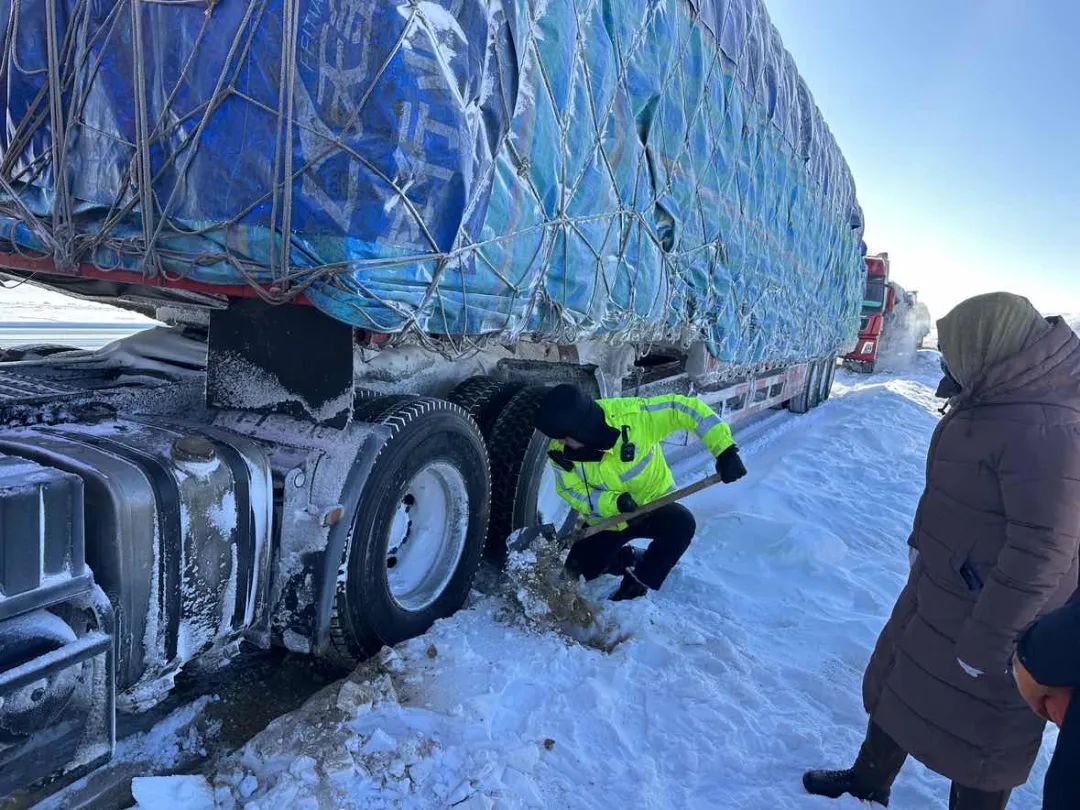1月21日,巴音郭楞蒙古自治州和静县辖区国道218线(艾肯达坂、查汗努尔达坂)等路段遭遇风吹雪恶劣天气的袭击,能见度不足5米。和静县公安局交警大队全体民警辅警以雪为令,分赴各点位开展风雪救援。通过增加巡逻车辆、加大巡逻力度、重点区域多次反复巡逻等方式对过往车辆进行引导护送。当天,巴音布鲁克派出所接到群众报警称,一家三口在拜年返程途中遭遇暴风雪被困,请求支援。接警后,巴音布鲁克派出所民警立即赶往车辆被困处,经过两个多小时的救援,最终将一家人送至安全地段。1月21日19时,塔城地区裕民县G219线江格斯乡至小白杨景区路段出现风吹雪天气,最大风力达到8级,现场约50辆车200余人被困。裕民县公安局交警大队接警后,迅速启动恶劣天气应急处置预案,派出民辅警赶赴现场。经过两个小时的救援,现场所有被困车辆成功驶离。