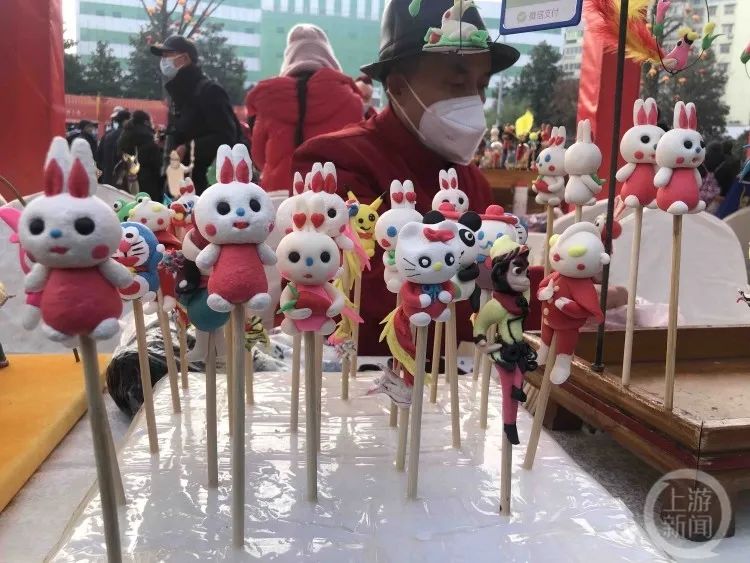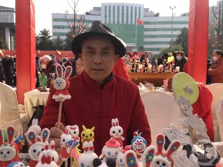 非遗年货大集上,大家请他教大伙儿捏一只红红火火的“小红兔”,寓意在新的一年大展宏“兔”。