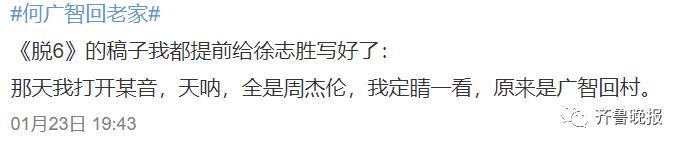 *点亮【在看】,欢迎回家过年。疫情防控最新消息和科普知识,戳→【防疫壹点通 】进入专题页面。原标题:《何广智回山东老家,乡亲们的横幅太好笑了!网友:压力来到徐志胜这边》