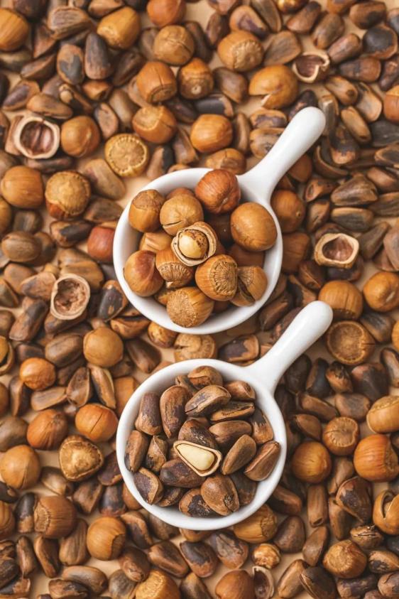 除了瓜子,东北唠嗑时的坚果还有榛子。榛子以辽宁开原的水漏榛子为最佳,虽然个头不算大,但是榛子味十足。经过烘炒的榛子身上都会有一条明显的裂缝,手一拍,榛子壳就开裂脱落,自带过年放鞭炮的喜庆。