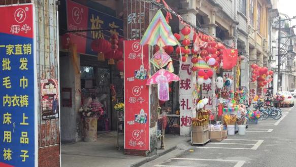 莲平路的骑楼街加装广告牌装饰