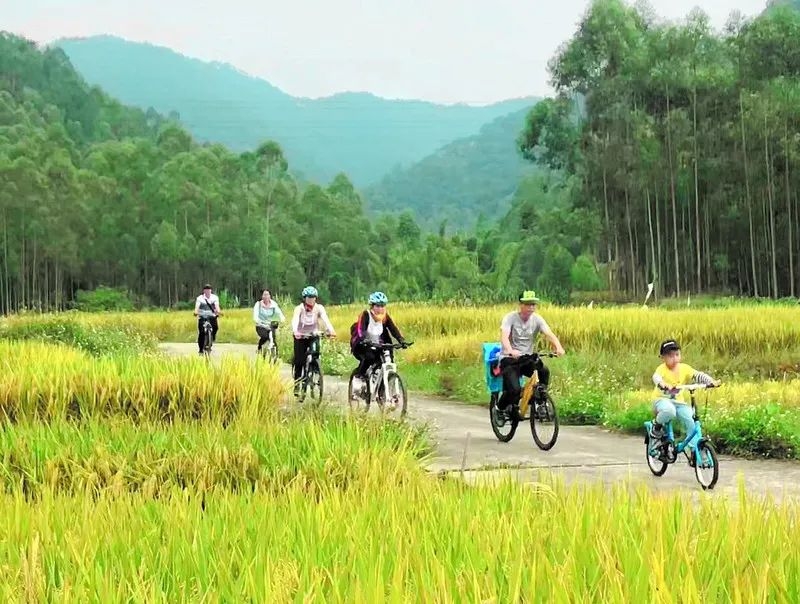 ▲在高要区大湾镇乡野,骑行爱好者享受田园风光。