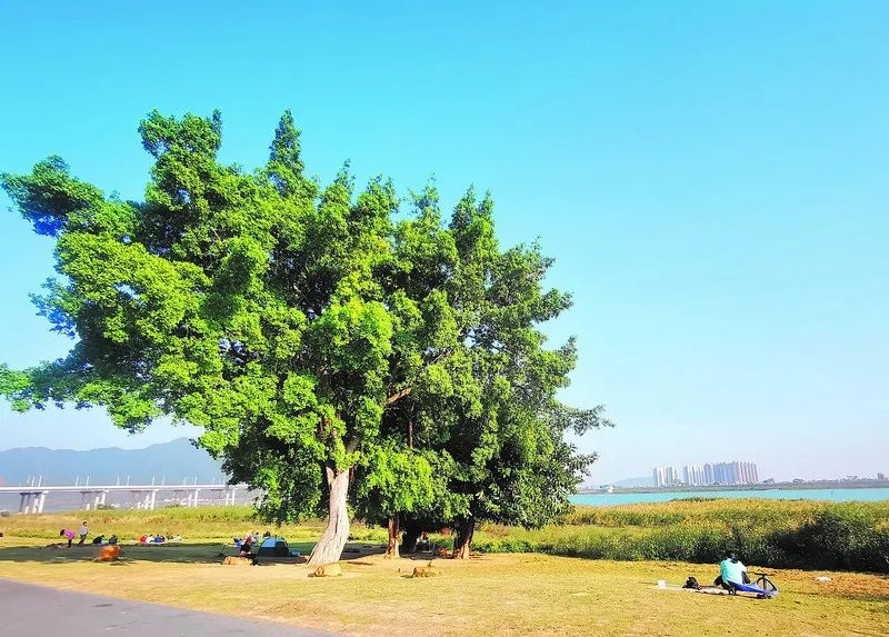 ▲肇庆市江滨公园里,市民享受冬日阳光。郭巍 摄