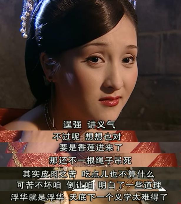 她不但没有看不起风尘女子,还因为正是由于沦落风尘才切身地体会到——在这人情淡薄的世间,也就这一点点的侠肝义胆,才是自己与姐妹们安身立命的根本。